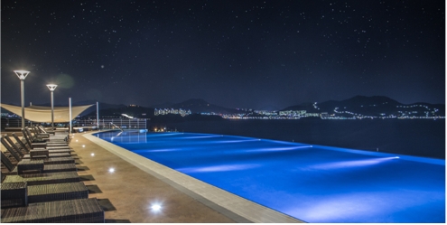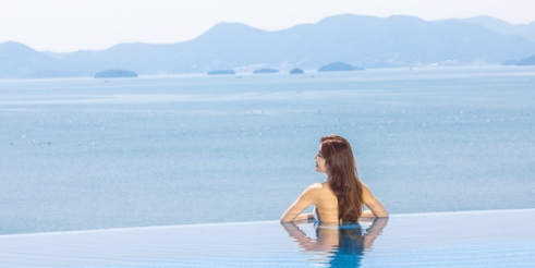 디오션 워터파크는 야외에서 여수 바다를 바라보며 온수풀을 즐길 수 있어 인생샷 명소로도 유명합니다.