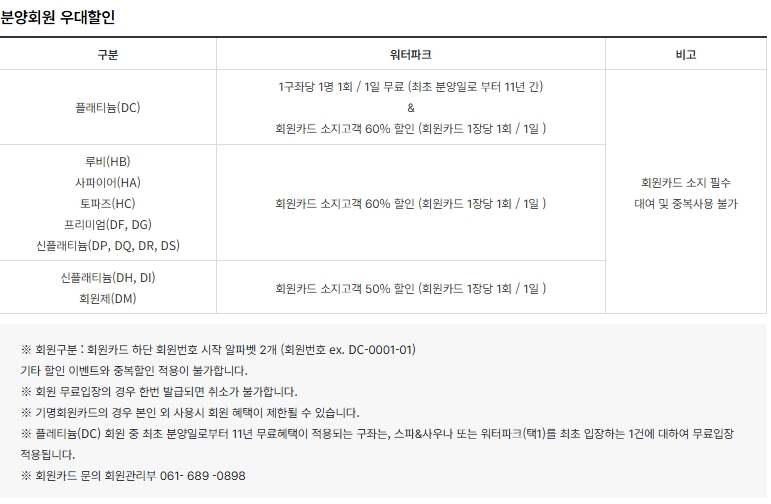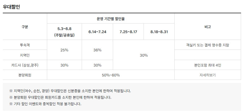 | 패키지 연계 할인 | 최대 40% | 숙박+워터파크 패키지 이용 시 자동 할인 적용 |