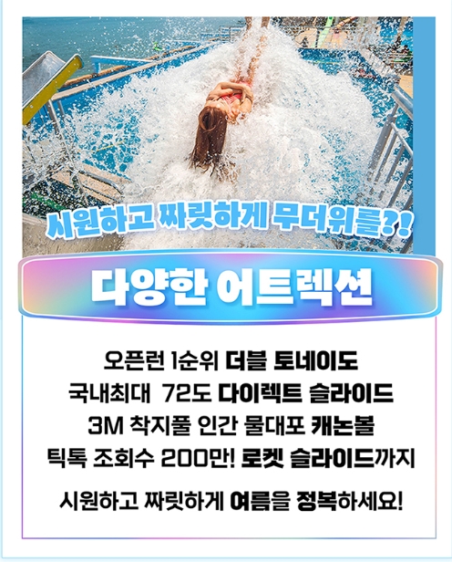 | 실외 어드벤처존 | 파도풀, 슬라이드, 유수풀, 선베드 존 | 청소년, 커플 |