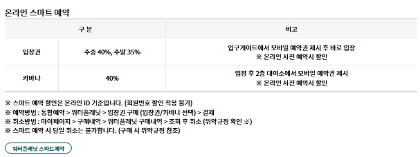 ※ 온라인 예매 시만 적용 가능하며 성수기에는 조기 마감될 수 있습니다.