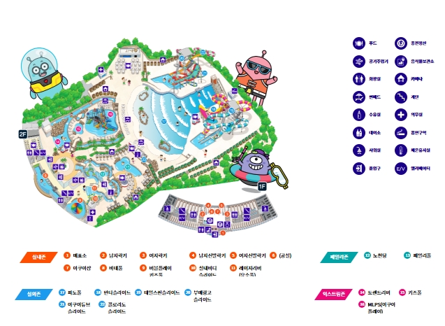 | 실외 익스트림존 | 파도풀, 바디슬라이드, 워터캐논존 | 청소년, 성인 |