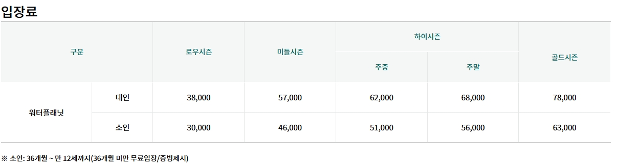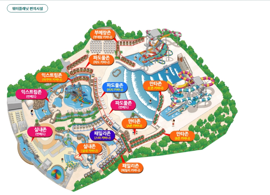 - 주차장: 워터파크 전용 무료 주차장 운영 (주차 공간 넉넉함)